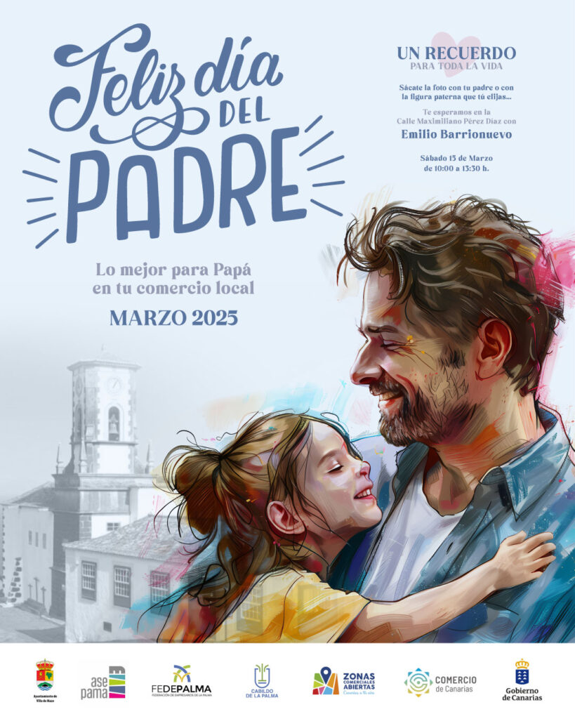 Como parte de esta iniciativa, ASEPAMA brindará la oportunidad de inmortalizar la figura paterna a través de un retrato profesional. El reconocido fotógrafo palmero Emilio Barrionuevo estará el sábado 15 de marzo de 2025 en la Calle Maximiliano Pérez Díaz, de 11:00 a 13:30 h, realizando retratos gratuitos a todas las personas que presenten un ticket de compra de alguno de los comercios asociados. Sin duda, un recuerdo único y especial para celebrar este día.