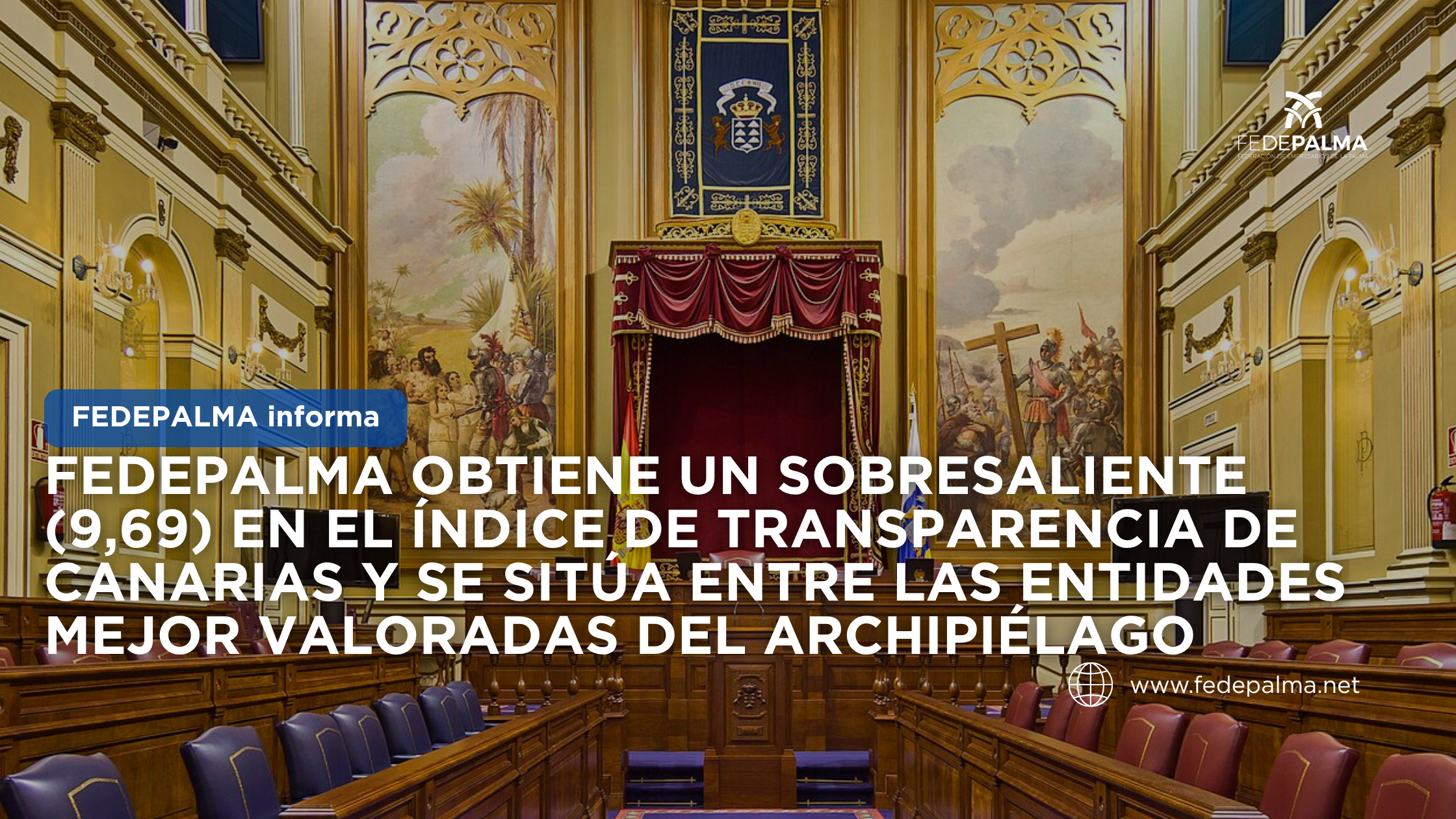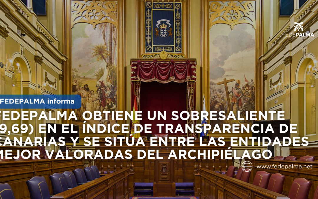 La Federación de Empresarios de La Palma (FEDEPALMA) ha obtenido una puntuación de 9,69 sobre 10 en el Índice de Transparencia de Canarias (ITCanarias), elaborado por el Comisionado de Transparencia del Gobierno de Canarias, situándose entre las entidades privadas mejor valoradas del Archipiélago.